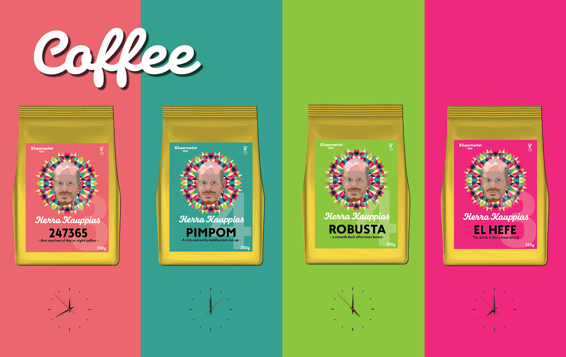 The store manager Teemu Tikkala's high memorable face was converted into a more digitized cartoon version of his alter ego Herra Kauppias and would support a range of white label own brand products that fit his target audience and carried his humour and style through the marketing, campaigns and in-store placement.